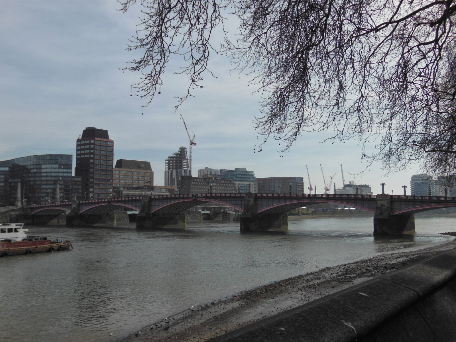During our subsequent ramble we found something really amazing: Tideway Village! It is nestling along the waterfront close to Battersea Power Station. The whole area is one big building site. We had to snake our way along a long and winding path, searching for access to the river, and suddenly were confronted with a community of houseboats! Imagine the scene: on one side of the little path you see dozens of dilapidated old vessels, on the other a group of skyscrapers being build! Surreal and mind-boggling.